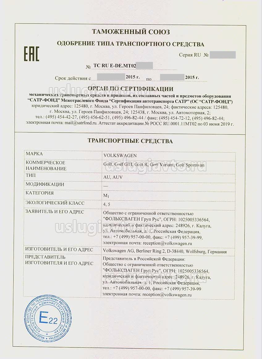 Одобрение типа ТС на Volkswagen Golf