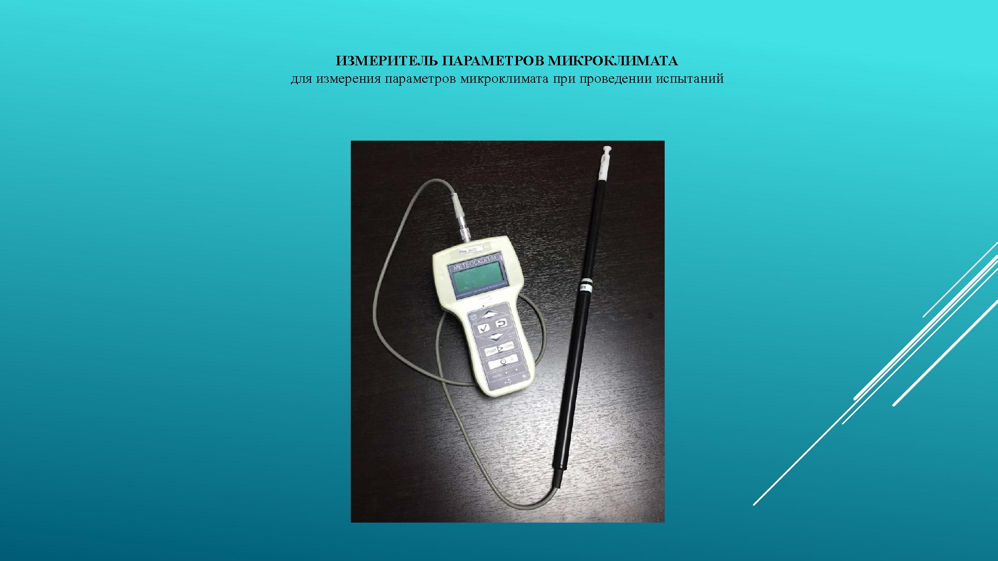 ИЗМЕРИТЕЛЬ ПАРАМЕТРОВ МИКРОКЛИМАТА для измерения параметров микроклимата при проведении испытаний